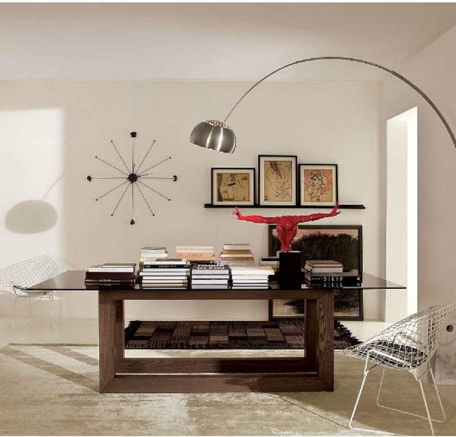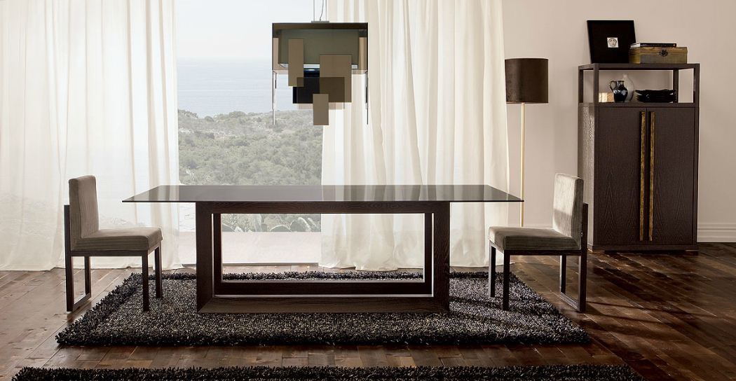 Spenser rectangular table from the Italian manufacturer EGO. The frame is made of solid oak. The table top glass or bronze, on two bases in the form of a rectangular frame. Colors to choose: black or brown, as well as on the manufacturer's catalogue. The model is made in modern style.