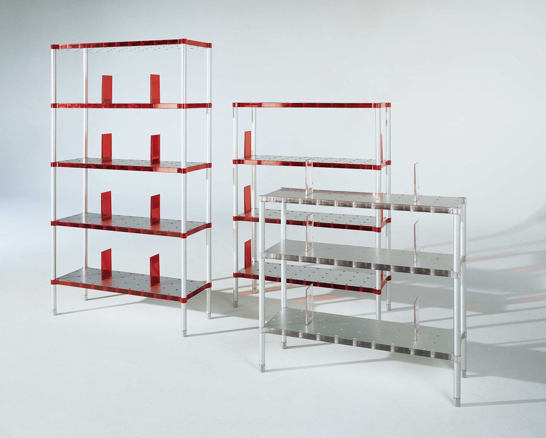 Rack Partener from the Italian manufacturer Kartell. The frame is made of aluminum. Equipped with two shelf dividers for books. A great choice for modern interiors. Product color steel.