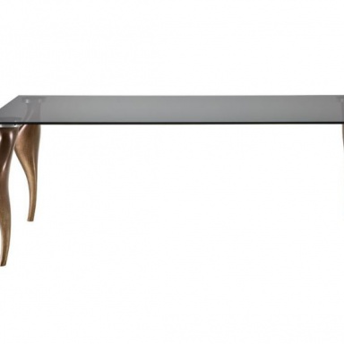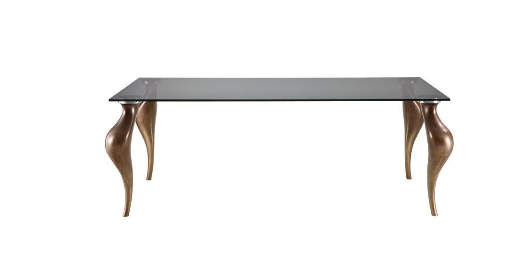 Desk Bound produced by the Italian factory EGO. The frame is made of solid oak. Rectangular glass table top. Legs are figured, varnished, colour bronze. The model is made in art Deco style.