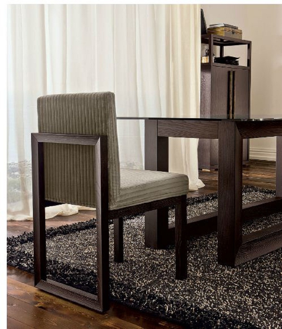 Chair Spencer produced by the Italian factory EGO. The frame is made from solid oak. Backrest and seat upholstered. Filling - polyurethane foam. Upholstery textile or leather. Rear legs form a rectangular frame. The model is made in modern style.