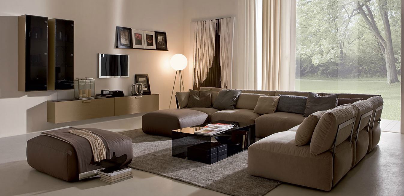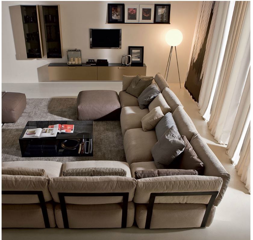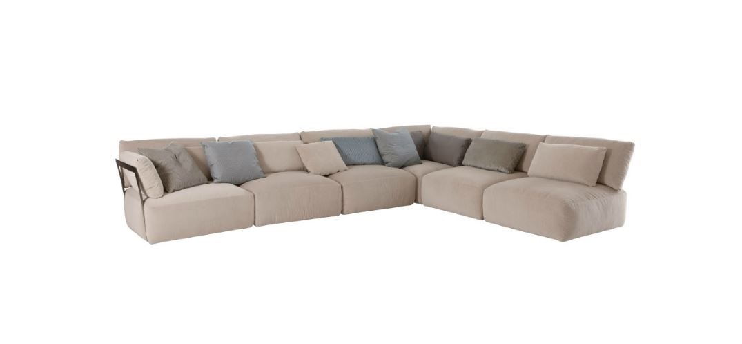 California corner sofa from Italian manufacturer EGO. The frame is made from solid wood. The back is a metal frame and cushions. Upholstery textile or leather. The model is made in modern style.