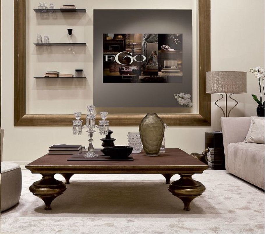Twister square coffee table from Italian manufacturer EGO. The frame is made of solid oak. The table top wood or glass, figured lacquered legs. The model is made in art Deco style.