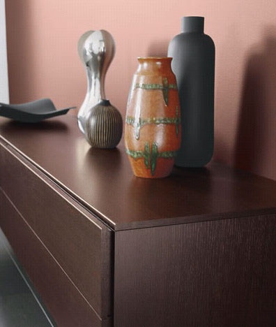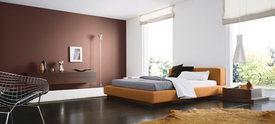 Set for sleeping from the Italian manufacturer Novamobili. Consists of double bed, bedside cabinets and hinged drawers. The frame is made from solid wood. The colors in the combination of orange and brown tones. The perfect solution for modern interior.