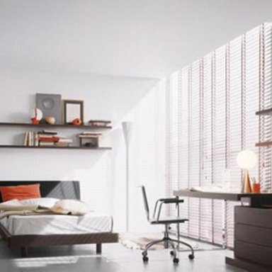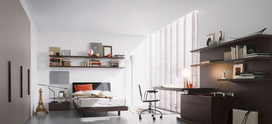 Set for sleeping from the Italian manufacturer Novamobili. Consists of double bed, bedside tables, bookcase, computer table and chest of drawers. The frame is made from solid wood in dark brown color. The perfect solution for modern interior.