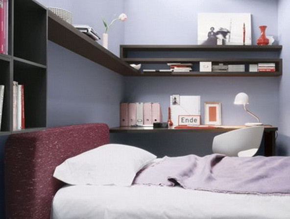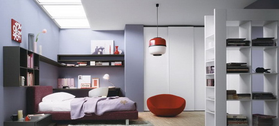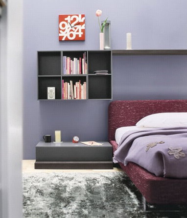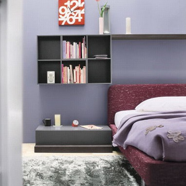 Set for sleeping from the Italian manufacturer Novamobili. Consists of a double bed on a low metal legs, side tables, bookcase, computer table and chest of drawers. The frame is made from solid wood and metal. Colours in stock. The perfect solution for modern interior.