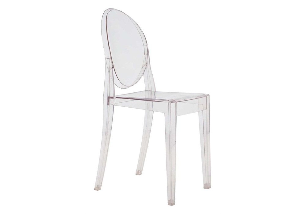 The Victoria ghost chair from the Italian manufacturer Kartell. The frame is made of transparent/colored polycarbonate. Model with medalonnye back. Perfect choice for modern interiors. Colours in stock.