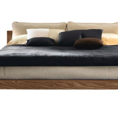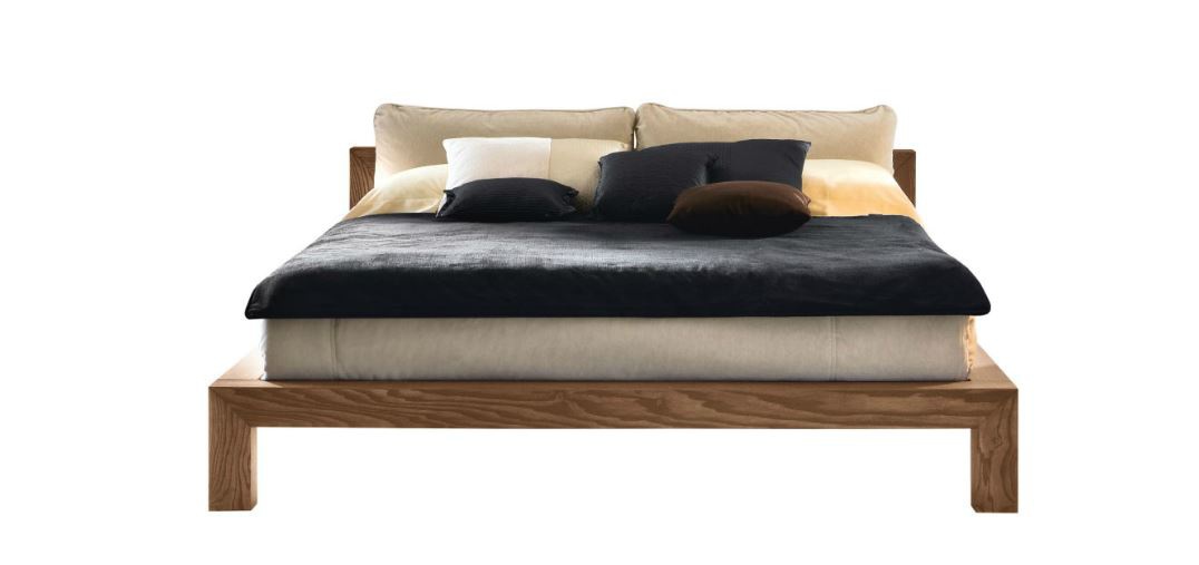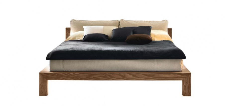 The Cube bed from Italian manufacturer EGO. The frame is made of solid oak. A low headboard upholstered in leather or textile. The model is made in modern style.
