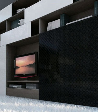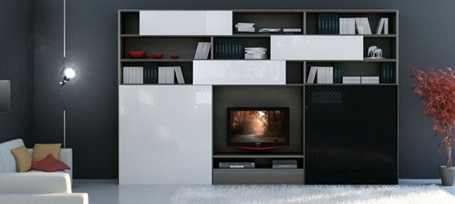 Modular system for TV from the Italian manufacturer Novamobili. A modular system for the modern living room. The frame is made from solid wood. There is a place to install the TV with all necessary accessories. Finish to be selected from the range of the company.