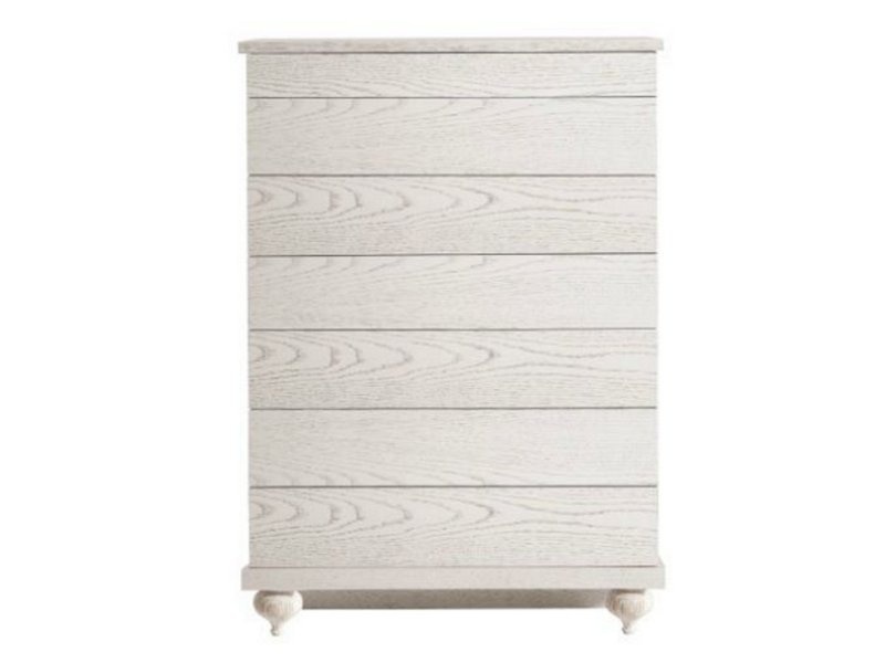 Tall dresser Marrakech from the Italian manufacturer EGO. The frame is made from solid wood. The model with seven drawers, an oak-figured legs. The product comes in white color c visible wood texture. The dresser is made in art Deco style.