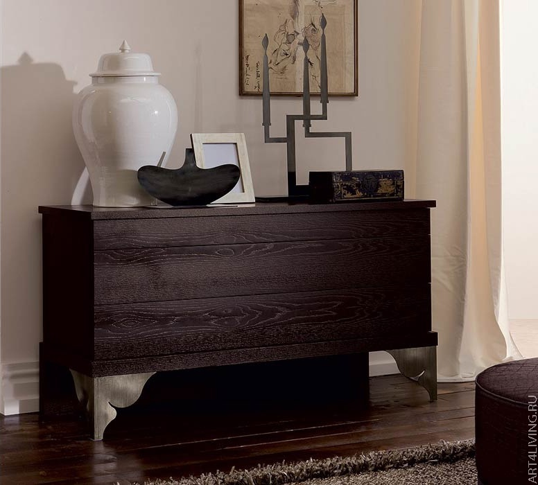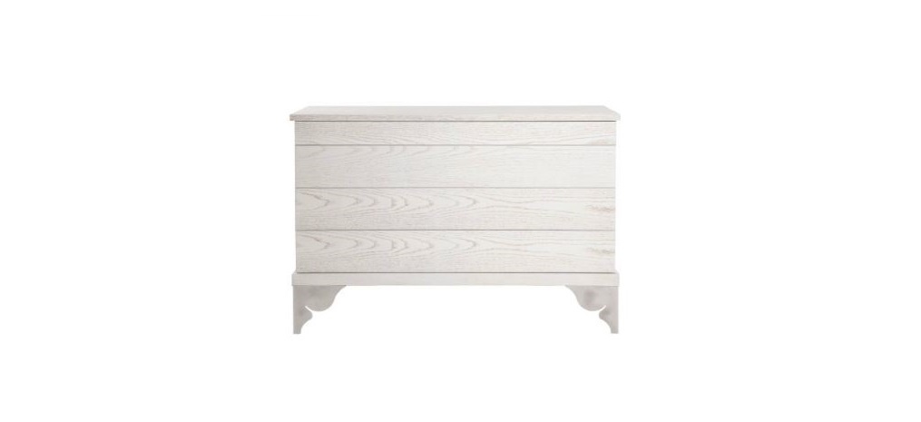 The Aladin chest of drawers from Italian manufacturer EGO. The frame is made of solid oak. Legs are figured, metal, painted white to match the dresser. The model with four or three drawers, executed in the art Deco style.