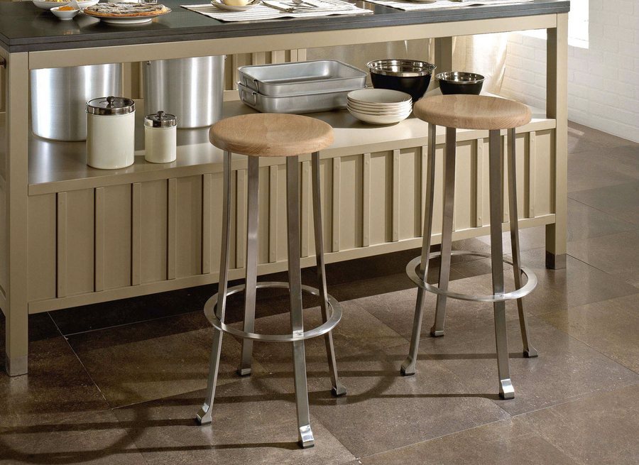 Divino bar stool from the Italian manufacturer Cantori. Model on high legs. The frame is made from chromed metal. The seat is round in shape. Material - solid wood. Finish offered several kinds to choose from. The chair is made in a modern style.