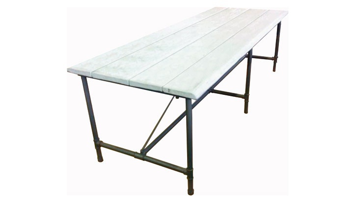 countertop: natural wood frame, legs: metal |