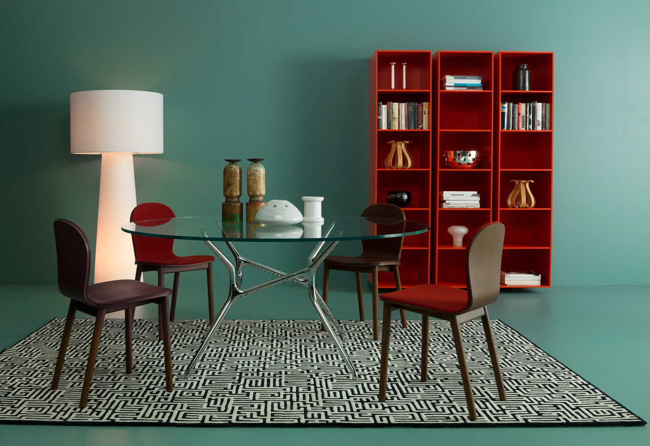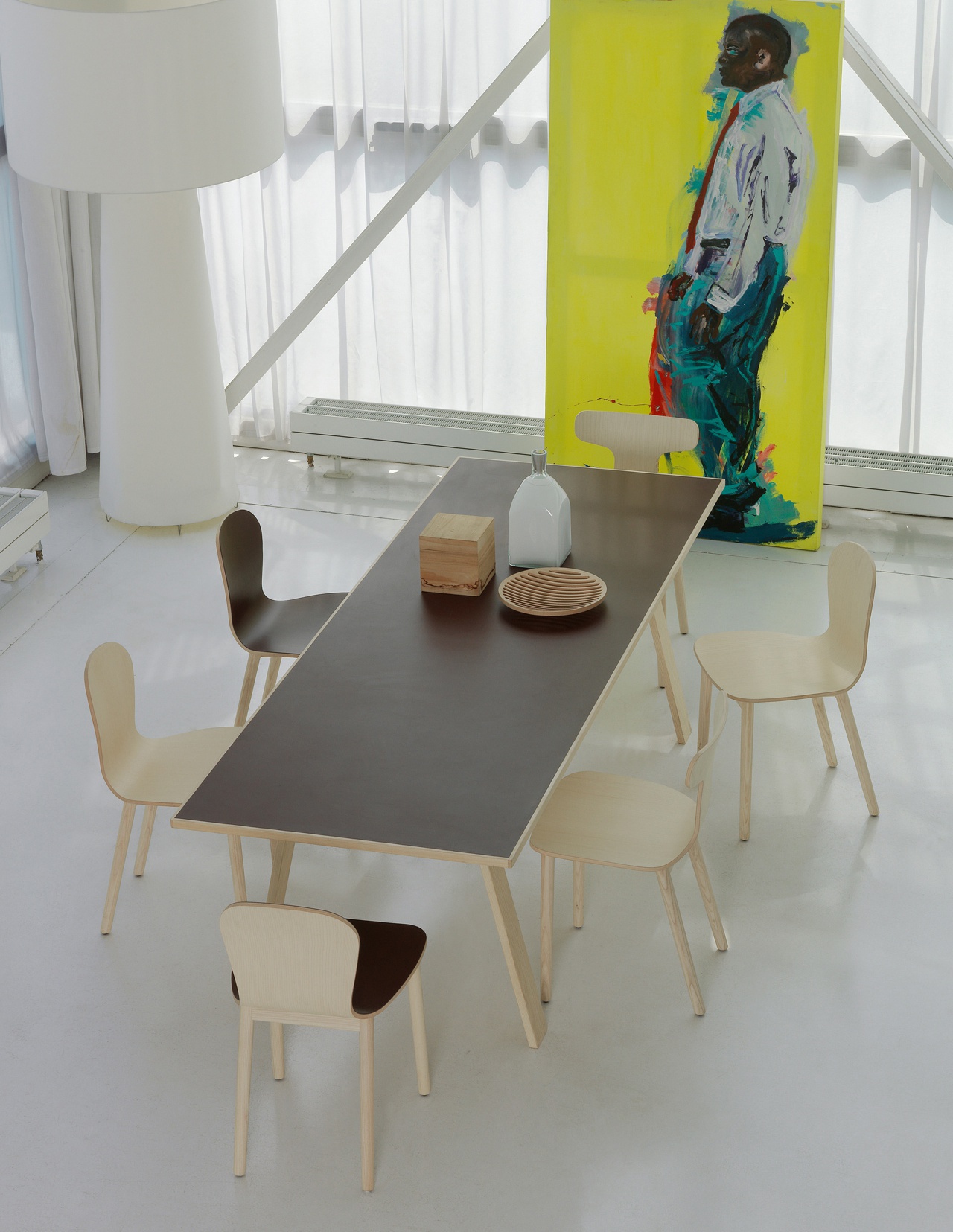 Bac Two chair from the Italian manufacturer Cappellini. The model is made in modern style. The frame and legs of wood. Finish - varnish or paint. Seat and back can be upholstered in leather or textile. Color option white, grey, brown or black.