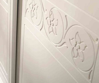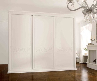Wardrobe Fiorile from the Italian manufacturer Benedetti. The frame is made of tamborito. The doors are sliding. Tricuspid the model is decorated with inlay. A charming choice for the bedroom in classic style. Product color white.
