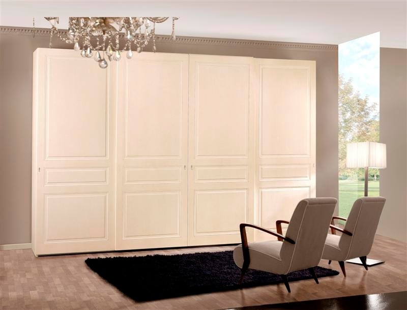 Wardrobe Pitti from the Italian manufacturer Benedetti. The frame is made from tamburino. The doors are sliding. The model is intended for bedrooms in classic style. Colors: white, beige.