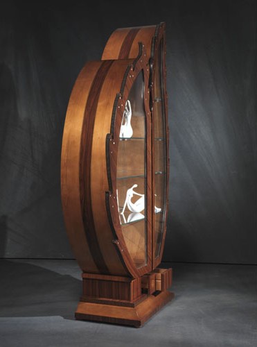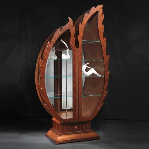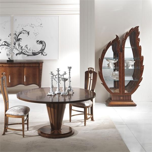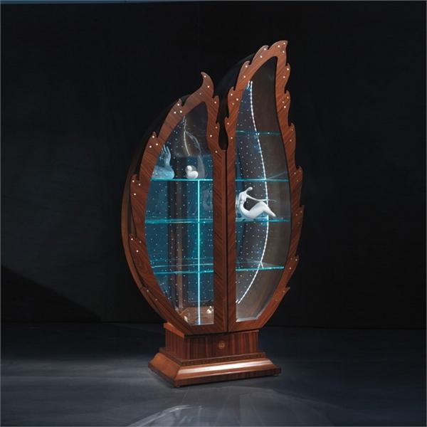 Showcase from the Italian manufacturer Carpanelli. The model is made in classic style. Attracts attention with its original design. The frame and base are solid wood. Finish - veneer. Sash of clear glass. Internal filling - glass shelves. The back wall decorated with a mirror insert. Available with built-in backlight.