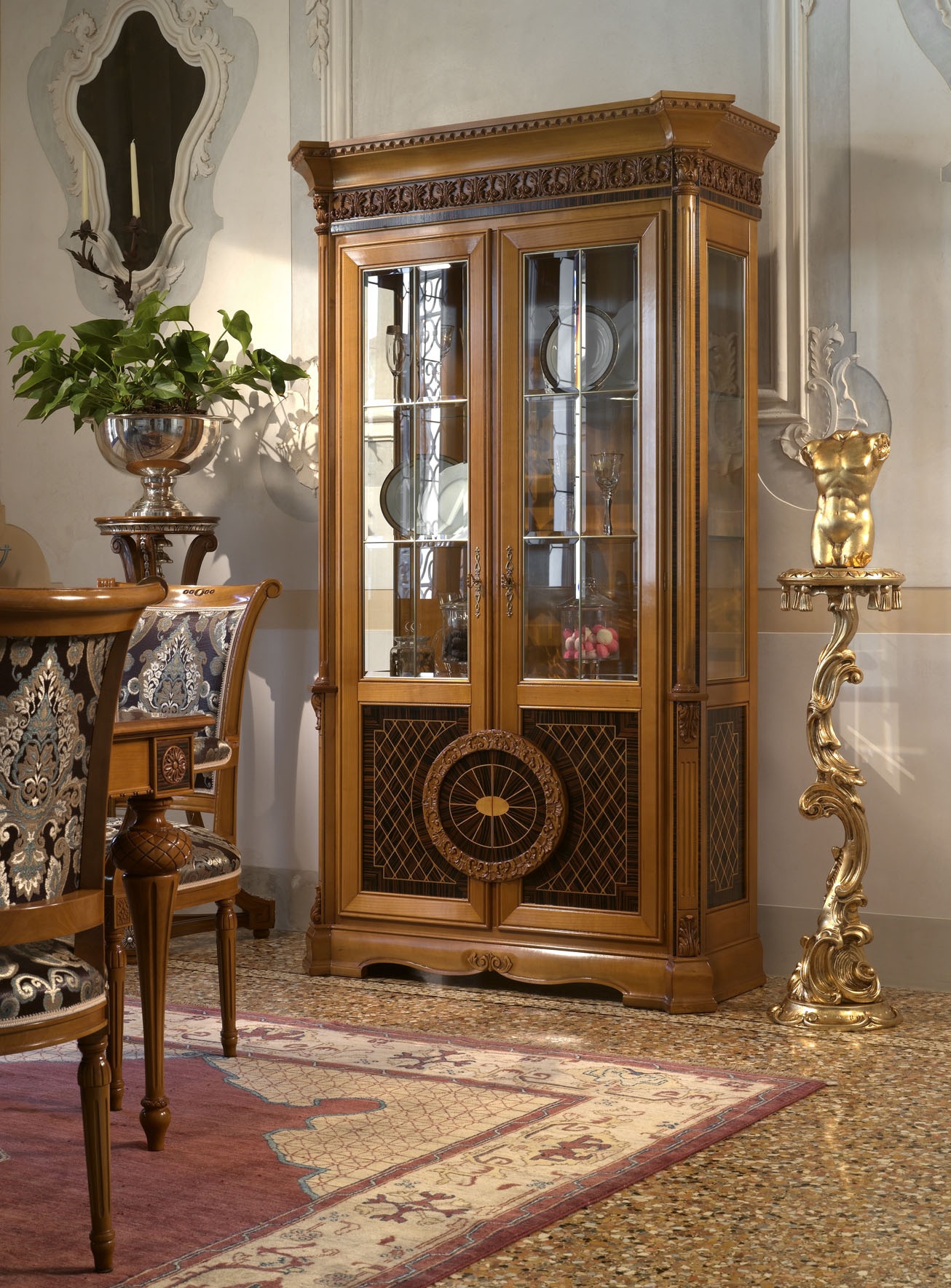 Two-door showcase from the Italian manufacturer Arca. The model is made of cherry with a finish of ebony. Perfect choice for classic style. Product color natural wood.