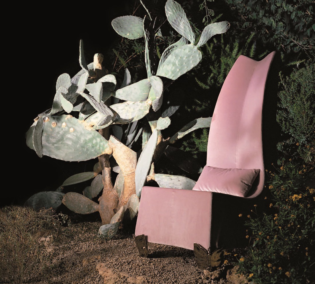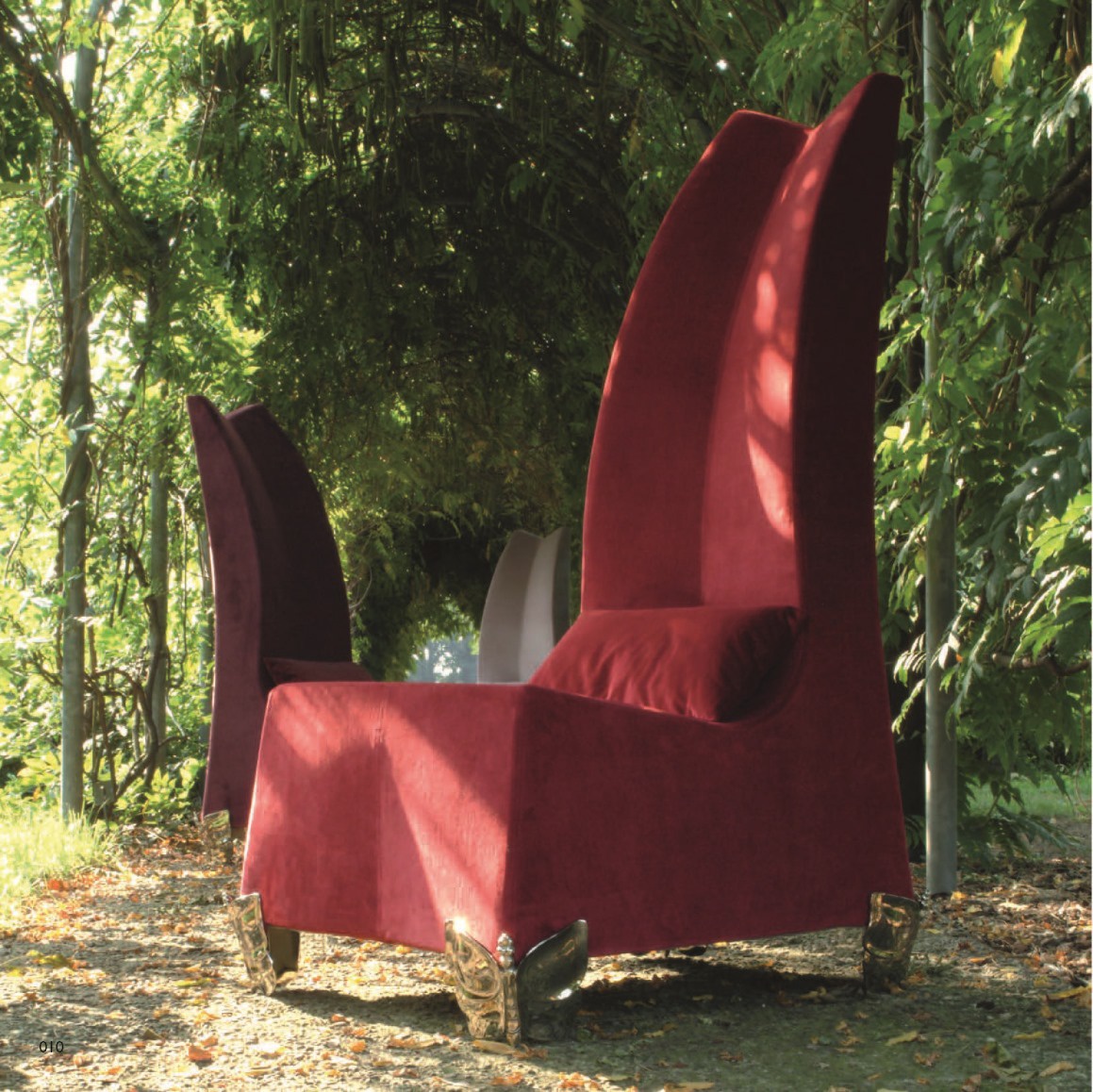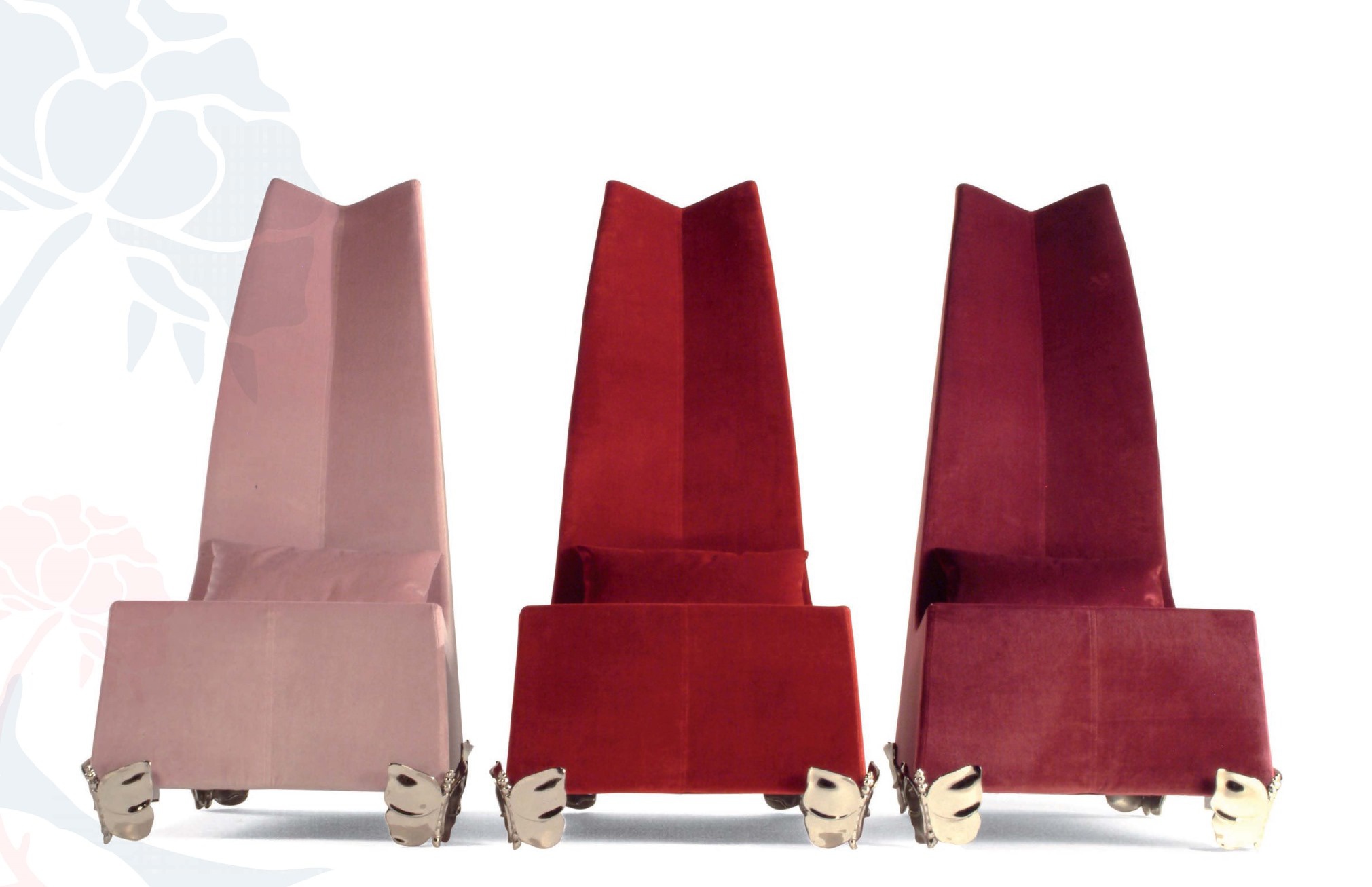The Butterfly armchair from Italian manufacturer JC Passion. The legs are made of metal, in the shape of a butterfly, upholstery - textiles from a range of campaigns. Model with a high back. The design complements decorative pillow. The perfect choice for a living room in art Deco style. Colors: white, red, purple.