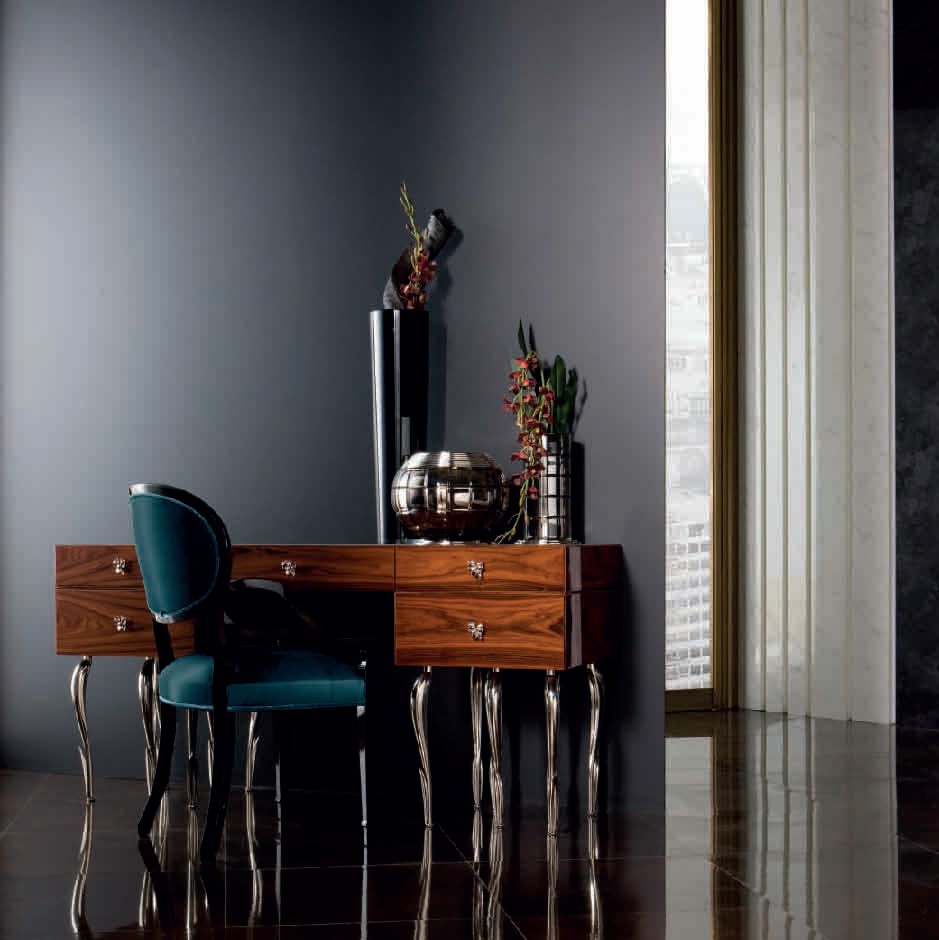 Desk Flower from Italian manufacturer JC Passion. The legs are made of metal, the frame is solid wood. The surface is treated with glossy varnish from the range of the campaign. The model of rectangular form with five drawers. A lovely choice for an interior in art Deco style. Product color natural wood.