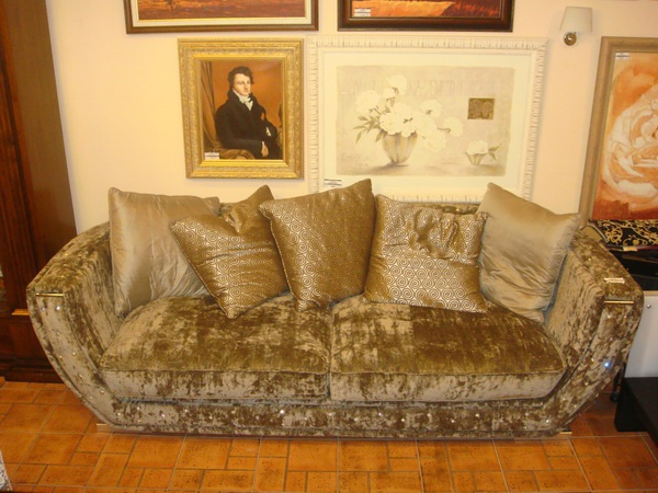 Double Mars sofa from Italian manufacturer Carpani. Model on low metal legs. Frame made of solid wood. Upholstery textile to choose from a collection factory. The seat cushion is removable. Filler - polyurethane foam. Back complements a variety of decorative pillows. The surface is decorated with Swarovski crystals.