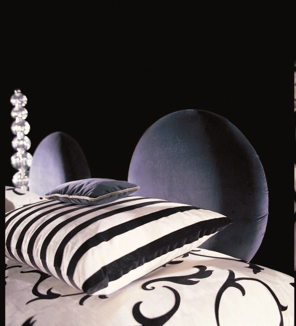 The bed was Literally from the Italian manufacturer JC Passion. The frame is made from wood in glossy patent finish. The legs are made of brass, upholstery - textiles from a range of campaigns. Model double, with columns decorated with crystal balls. The design of complementary decorative pillows. A charming choice for the bedroom in art Deco style. Colors: white, black.