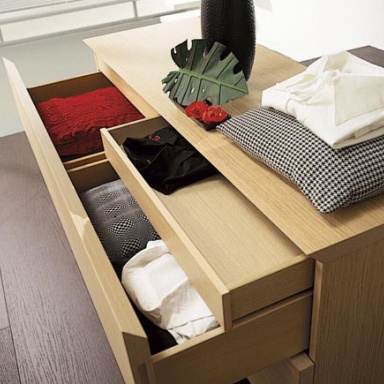 Chest of drawers from Italian manufacturer Olivieri. This model provides for linen storage. Shows a variant in beige natural wood. The perfect solution for modern interior.