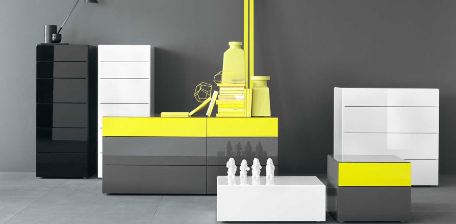 Chest of drawers from Italian manufacturer Olivieri. The model provided for linen storage. Presented variant in combination of white, bright yellow and black. The perfect solution for modern interior.