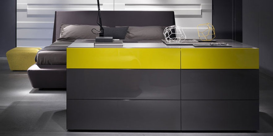 Chest of drawers from Italian manufacturer Olivieri. The model provided for linen storage. Represented variant embodiment, the combined grey and yellow. The perfect solution for modern interior.