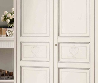 Wardrobe from Rinascimento the Italian manufacturer Benedetti. The frame is made of tamborito. The doors are hinged. The model is decorated with inlay. A great choice for the interior in classic style. Product color white.