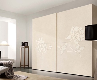 Wardrobe Rosa Tea from the Italian manufacturer Benedetti. The frame is made from MDF and tamborito. The doors are sliding. The model is decorated with floral ornament. Perfect choice for modern interiors. Product color white.