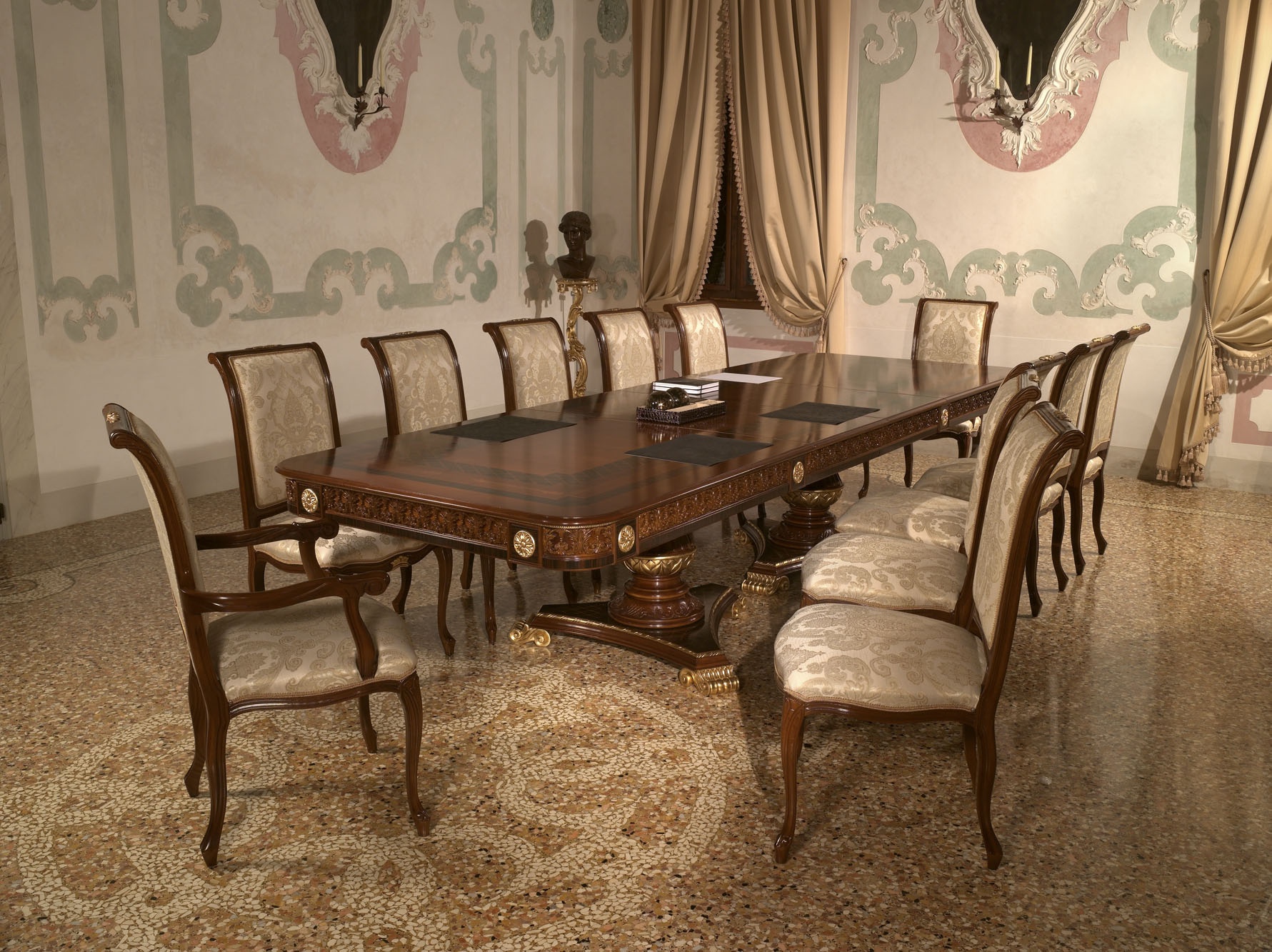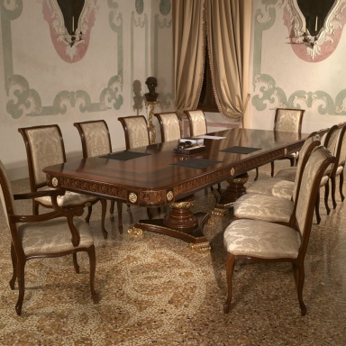 Sliding table factory Arca, is made of cherry with hand-finished made of ebony, with gold or silver.