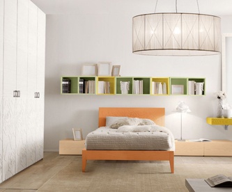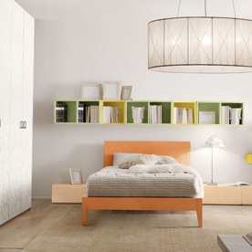 Children Teenager from the Italian manufacturer Benedetti. Set includes bed, bedside tables and wardrobe. The furniture is made of MDF and tamborito. The Cabinet door swing. Set in a contemporary style. Colours in stock.