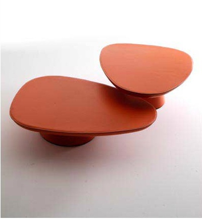 Coffee table from Italian manufacturer Fasem. The frame is made of wood. Finishing varnish from the company portfolio. Color - orange. The model resembles the shape of river stones. The table is designed in modern style.