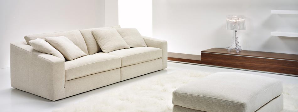 The sofa Tobias, from the Italian manufacturer Frighetto. The frame is made of natural wood, upholstery - textiles or leather. Color scheme - white. The model will perfectly complement the modern interior living room.