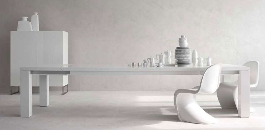 Dining table Italian manufacturer Olivieri. The table is made of wood on massive legs the table top is rectangular. Color scheme in white. The modern style of execution.