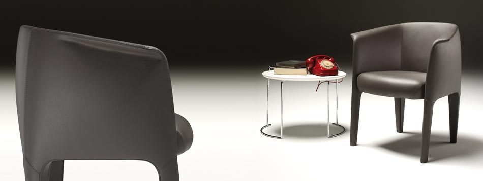 The armchair from Italian manufacturer Frighetto. Model on a hidden framework of wood. Upholstery - leather. The backrest becomes the armrest. Color option to choose from a range of companies. Made chair in a contemporary style.