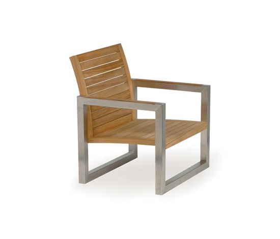 The chair from the Belgian manufacturer Royal Botania. The frame is made of metal, the seat and back is teak. The model with armrests. A lovely choice for summer furniture in modern style. Product color natural wood.