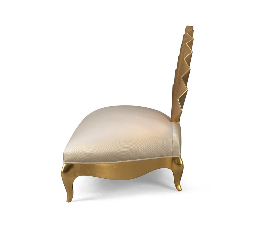 The Le Fan Plisse chair from Christopher Guy manufacturer. Model with shaped backrest. Material - natural wood. The surface can be painted white, black, Golden or silver color. Seat in leather or textile upholstery. The filler is not deformable polyurethane foam.