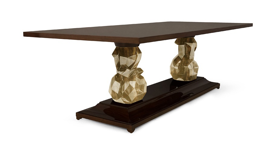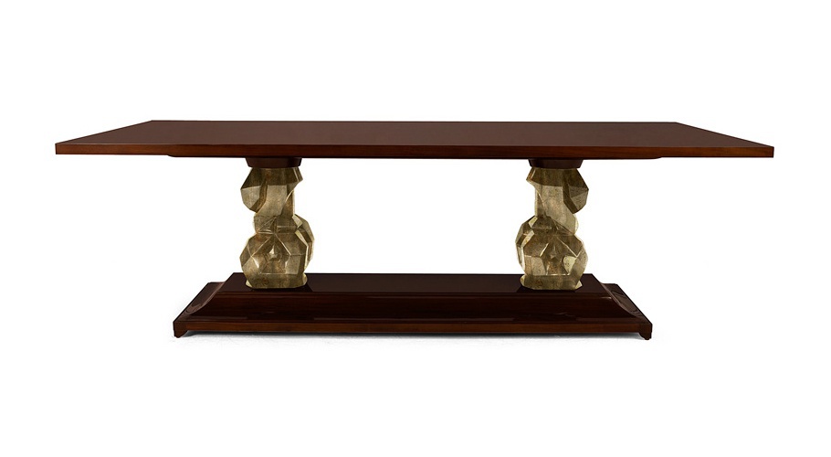 Dining table Daliesque from producer Christopher Guy. The model with a rectangular base and top. Carved legs. Material - natural wood. The surface is treated with lacquer. Made the table in art Deco style.