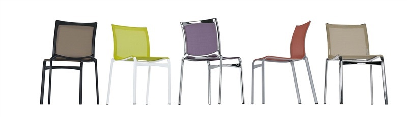 Stackable chair with seat and back made of fire-resistant PVC and aluminum frame construction Bigframe, Alias