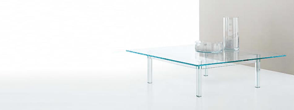 Vienna coffee table from the Italian manufacturer Frighetto. Model on a frame of chromed metal. Countertop rectangular from transparent glass. The table is manufactured in contemporary style.
