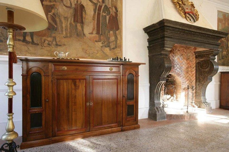 A chest of drawers from Italian manufacturer Ca' d'oro. Includes several sections with double doors and one drawer. The body is made of solid wood. The surface is treated with lacquer. Handle metal gold. The model is made entirely by hand.