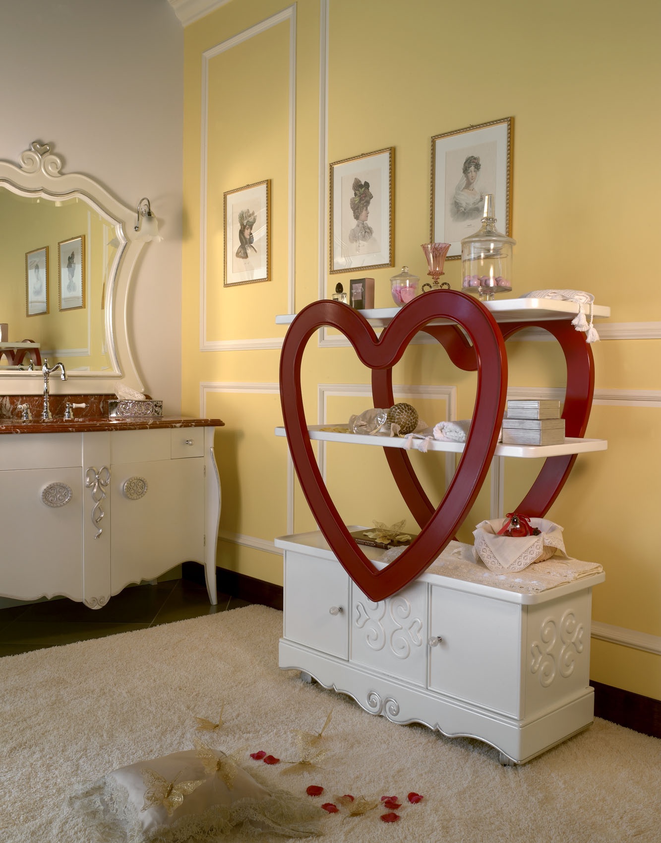 Bookcase from the collection of the Princess from the Italian manufacturer Arca. The frame is made from solid wood, the surface is treated with varnish from the range of the factory. Shelves hold the two supports in the shape of a heart. A chic choice for children's room in modern style. Colors: white, red.