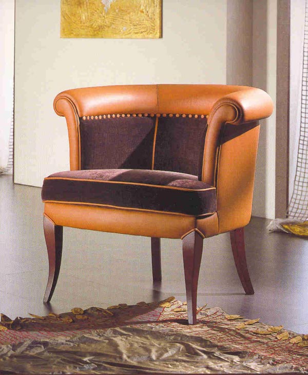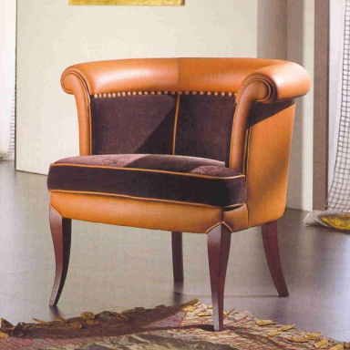 Leather chair from the Italian manufacturer M&R. the round Chair on low legs made of solid wood of valuable breeds. Upholstery made of genuine leather beige color and textiles. The model is made in classic.