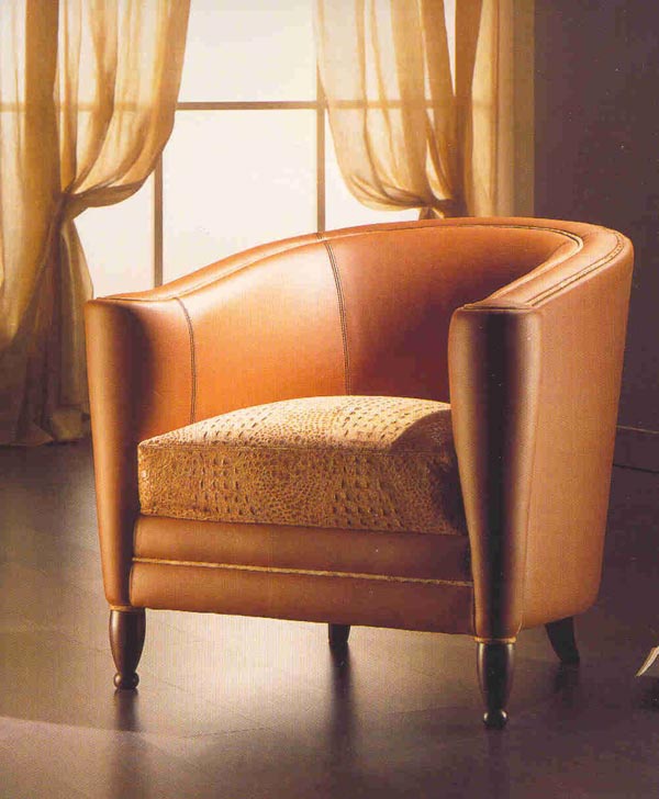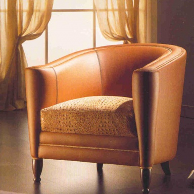 Leather chair from the Italian manufacturer M&R. the round Frame of the chair is made from solid wood. The upholstery leather beige and brown. The model is made in classic style.