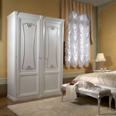 Wardrobe from the collection of the Princess from the Italian manufacturer Arca. The case is made of natural wood, silver-plated finish. The doors are hinged. The model will surely embellish the nursery in the style of glamour. Product color white.