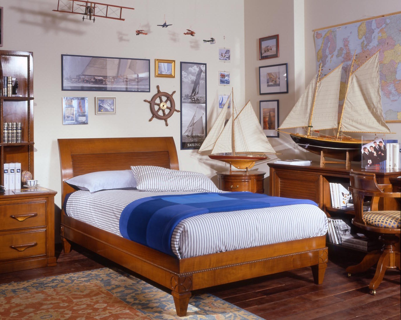 Single forging from the collections of Beauty and Yachting from the Italian manufacturer Arca. The frame is made from solid natural wood. The model is designed for a child's room in classic style. Colors: natural wood color, white.