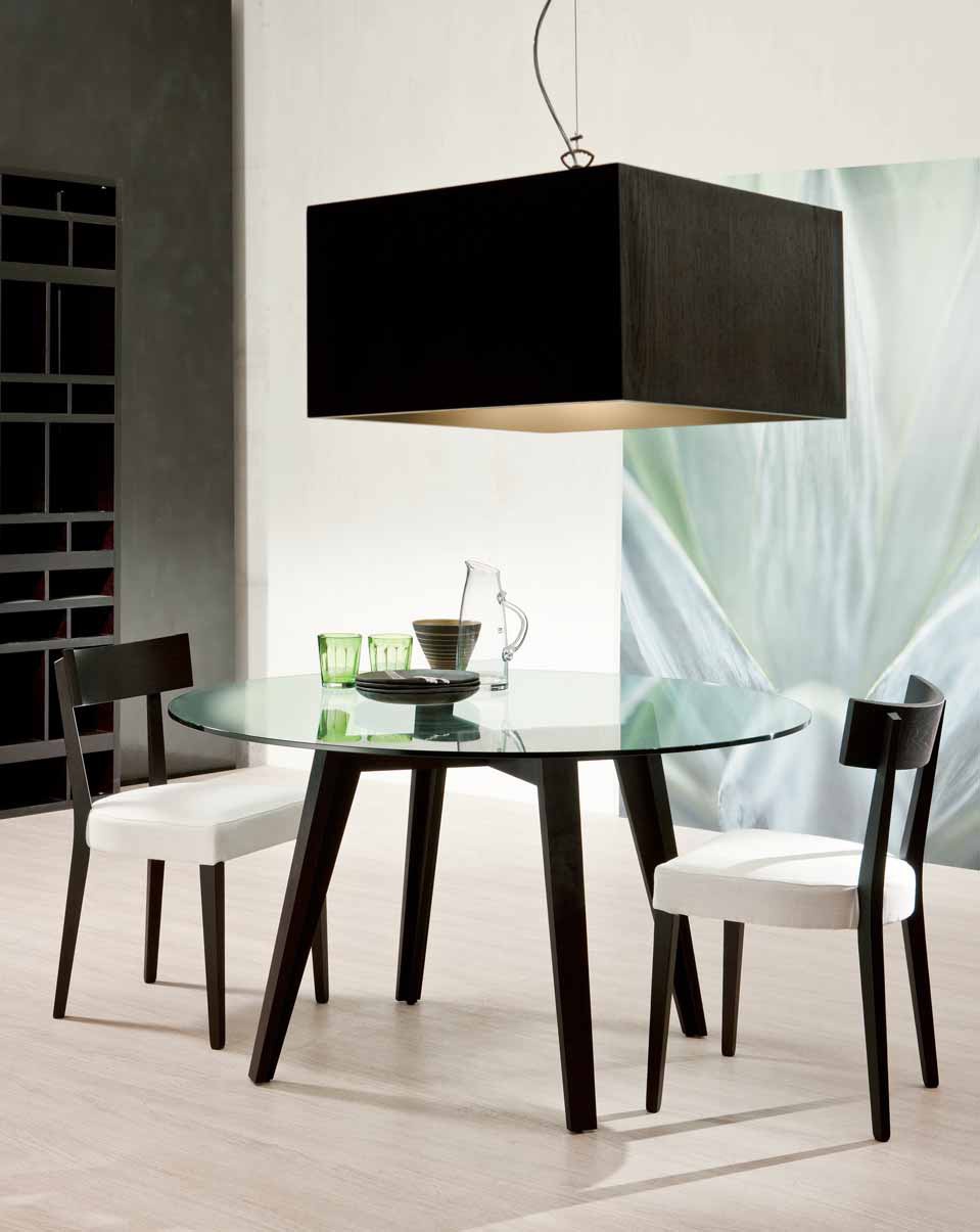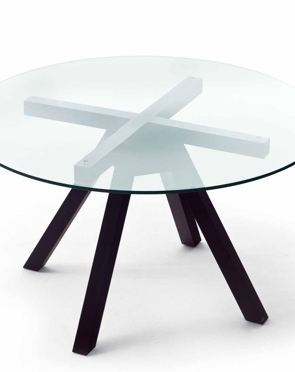 Dining table from the Italian manufacturer Pacini & Cappellini. The model is in modern style. The table top is made of glass, legs - natural wood. Colours in stock.