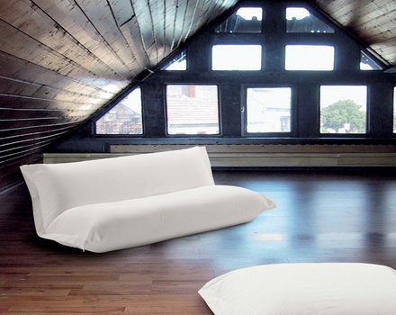 The Guanciale sofa from Italian manufacturer Futura. Double the product on the basis of lacquered steel, a layer of filler - microfiber, the removable coating is a synthetic fabric. Not difficult to handle mechanism allows to transform the sofa into a bed. The model is designed for living room in modern style. The sofa is made without legs, on a low base. Color range: white.