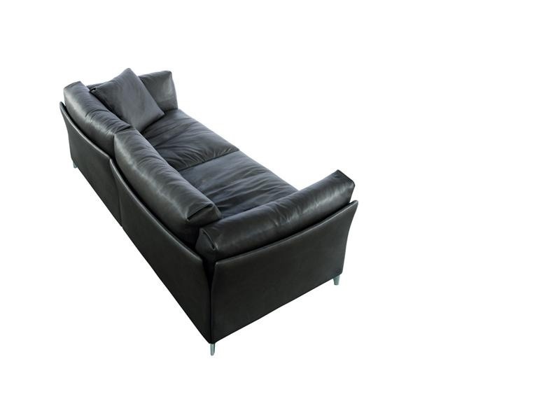 Sofa with frame in solid wood, a filler of polyurethane foam and goose down and upholstered in leather or textile Bahia, Alivar
